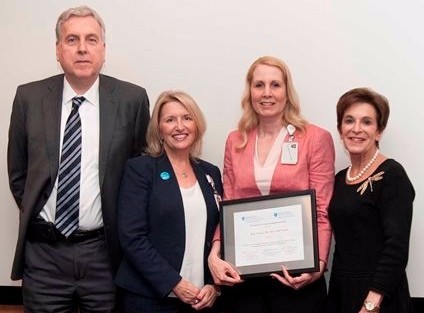 The award will be presented annually to a mid-career, doctorally prepared nurse researcher with a passion for scientific inquiry. (Pictured from left, Maurizio Fava, MD, director of the Division of Clinical Research; Susan A. Slaugenhaupt, PhD, scientific director of the Research Institute; Francis; and Jeanette Ives Erickson, RN, DNP, NEA-BC, FAAN, former chief nurse and senior vice president of Patient Care Services)